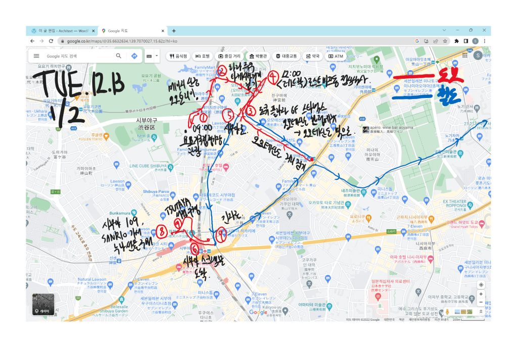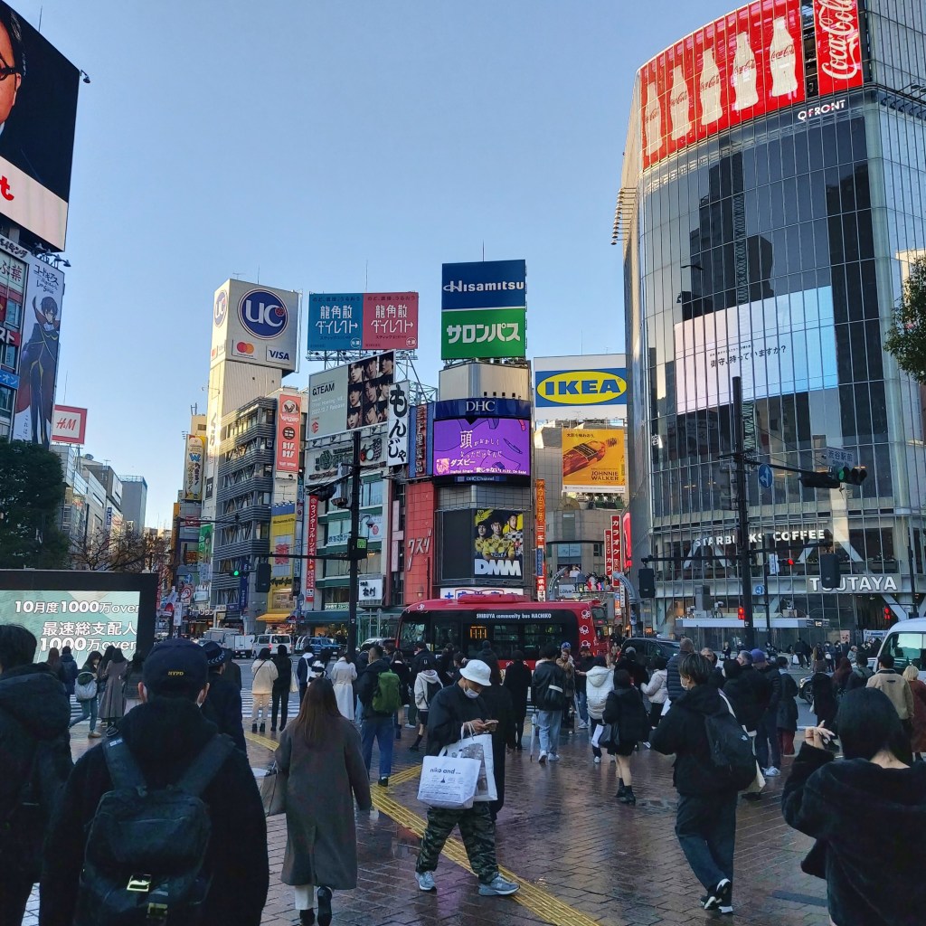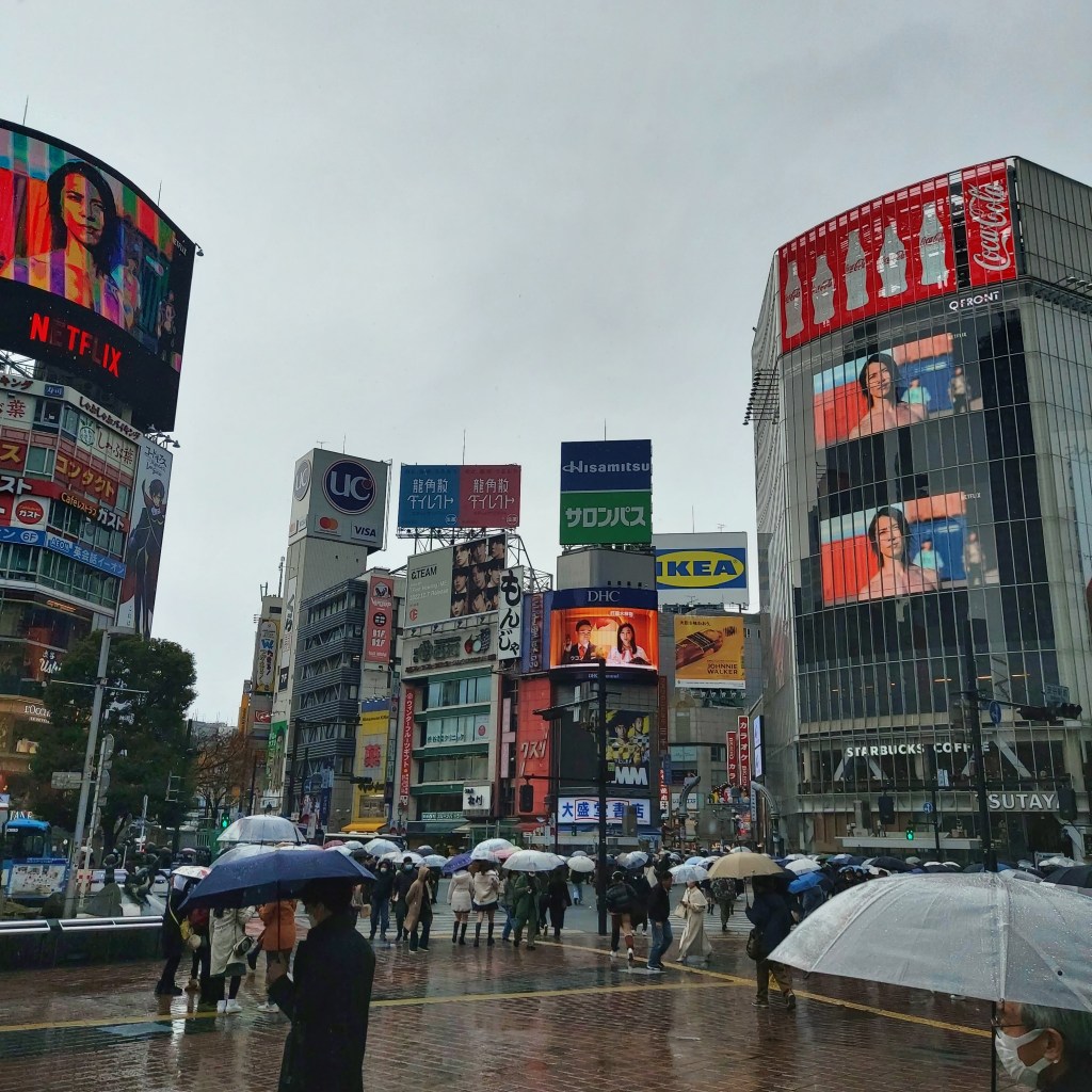 시부야역에 하차한 뒤, ‘하치코 동상 출구’라고 적혀있는 안내문을 따라 쭉 갔다. 그리고 나에게 보인 풍경은 그토록 많이 보았고, 그렇게나 가보고 싶던 시부야 스크램블이었다. 넓은 횡단보도, 그에 비례한 행인들, 그리고 우산으로 하여금 더욱 밀집한 듯한 느낌, 광고들의 화려함, 반짝임, 선명함. 진정한 대도시임을 나는 상기하게 되는 순간이었다. 이 복잡함. 나는 이 어지러울 수 있는 복잡함. 쉴 새 없음. 에너지틱한 공간을 찾고 있었던 것일지도 모른다. 너무 과장했는가? 생각이 나는 대로 적고 있다. 그 횡단보도를 나도 건너 보고, 다시 건너 보고, 높은 마천루들과 행인들을 지나치고, 나는 시부야에 와 있다.