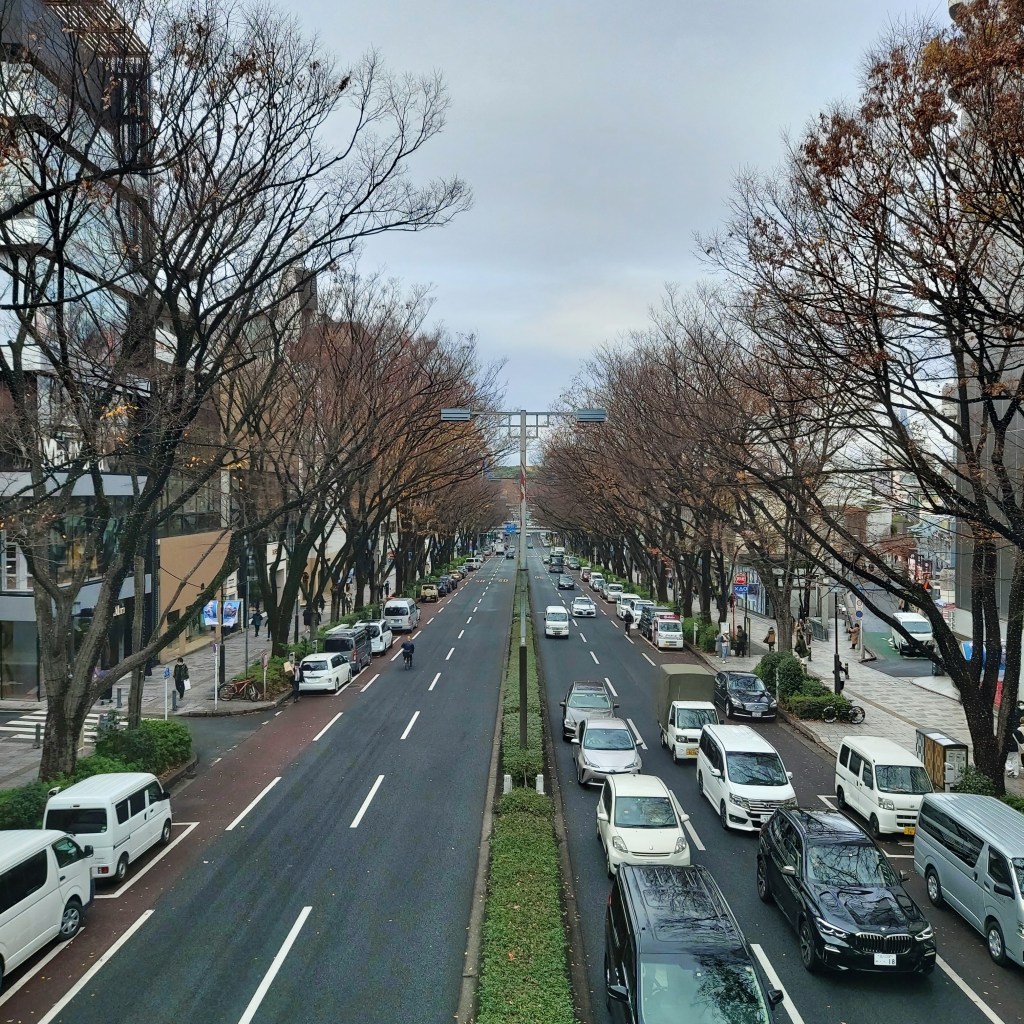 대칭적인 가로수들로 뻗어나가는 오모테산도 거리. 육교 위에서 촬영한, 매우 질서를 잡은 사진이다. 이 나무들은 밤이 되면 흰색 빛으로 거리를 밝힌다. 이 육교는 그 찬란한 나무들의 연속을 보기 위해 문전성시를 이루겠지. 하지만 밤에는 안전 상의 이유로 폐쇄를 한다고 한다. 그래서 생각난 것이 있는데, 이런 육교를 리모델링해서, 넓은 육교를 만들어 밤에도 많은 인파가 이 멋진 풍경을 즐길 수 있게 하는 것도 좋을 것 같다.