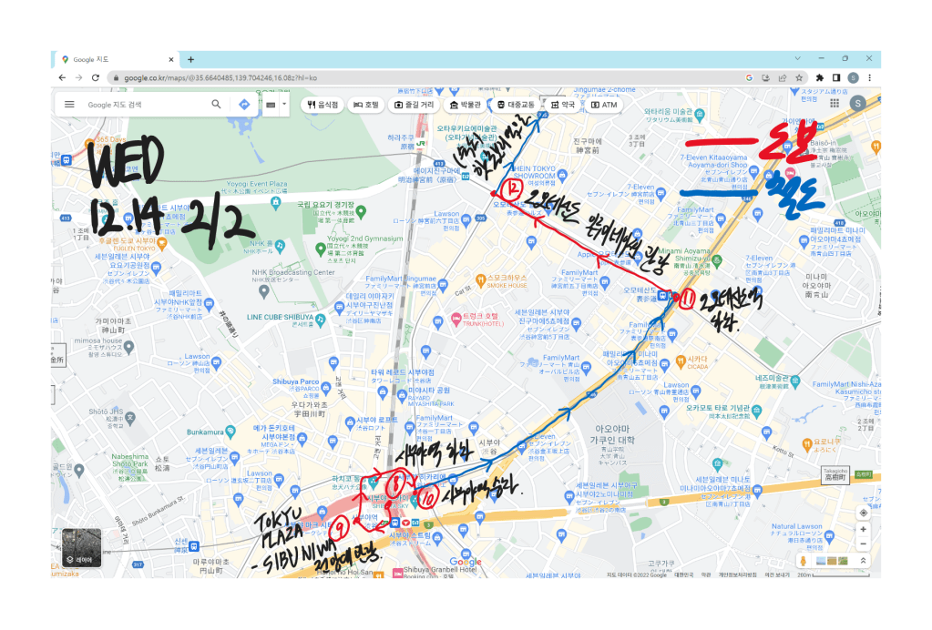여행에서 매일 걸어다닌다는 것이 상당히 고역인 것을 느꼈을 때가 이때가 아닌가 싶다. 5일 여행 일정 중 3일차 되는 날인 12월 14일 수요일 아침, 하마타면 숙소에서 늦잠을 더 잘 뻔했다. 나는 겨우 몸을 일으켜 세웠고 계획한 장소로 출발했다.