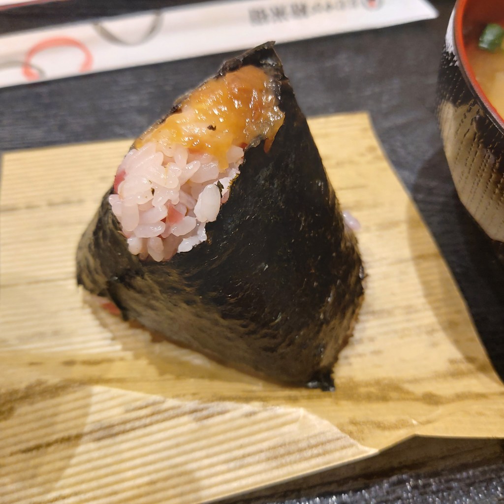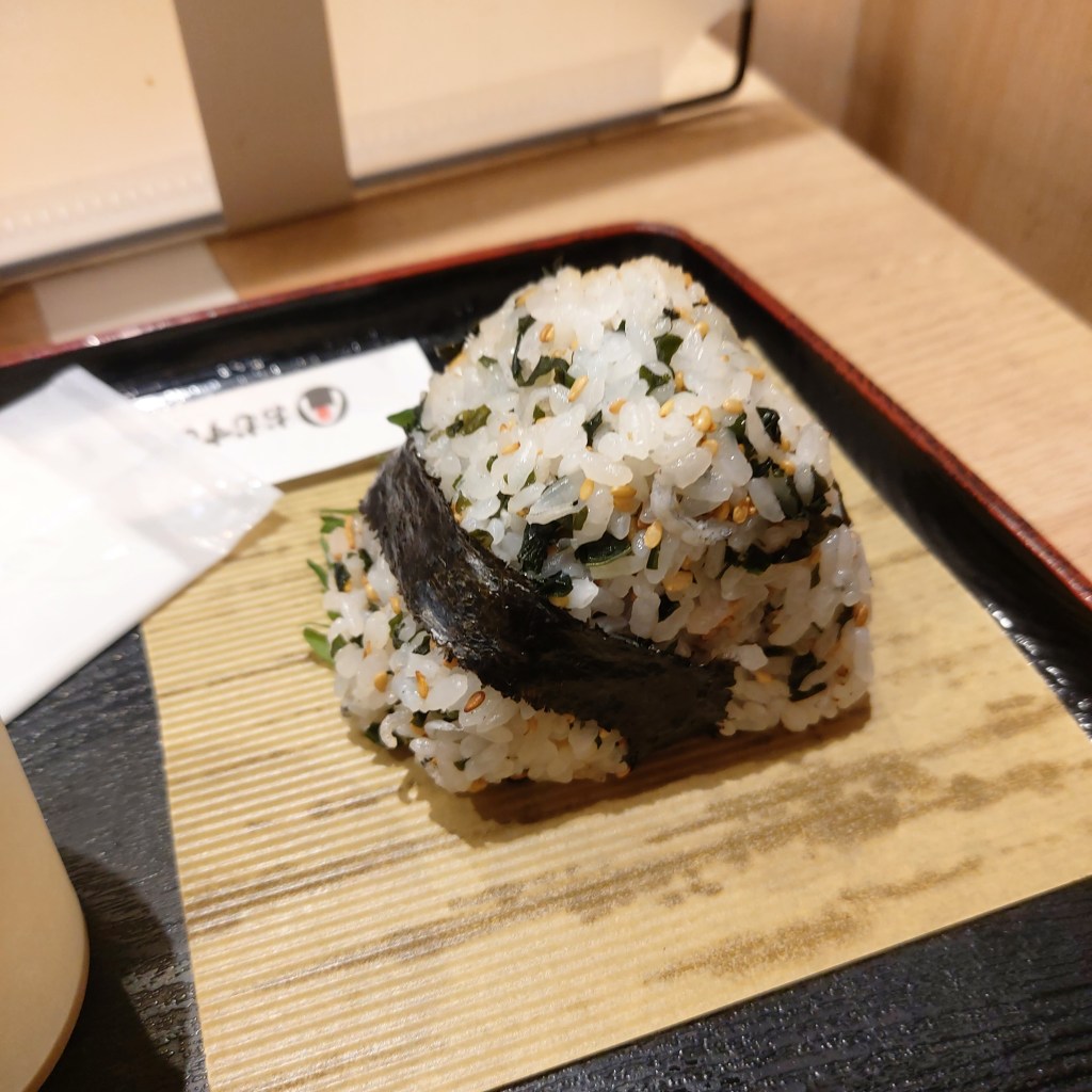 이름은 잘 기억이 안 나지만, 아. 정말 맛있다. 배고파서 그런 것도 있지만, 배부를 때 먹어도 정말 맛있는 것 같다. 고슬고슬하게 입안에서 참깨와 섞여지는 따스한 밥알들, 그리고 적당히 짭조름한 주먹밥. 저 사진 밑에 야채가 보이는가? 깻잎 같은 잎이 있는데, 오니기리를 다 먹을 즈음에 먹게 되는데, 쌉쌀하면서 풀 향의 풍미가 제대로 나는 탓에 정말 맛있게 마무리를 했다. 여기 가게 이름은 <본고 오니기리>. 리뷰를 보니 맛집이더라. 이 오니기리가 워낙 맛있는 탓에, 다른 오니기리에 된장국 같은 것도 먹어봤다. 다른 주먹밥 이름은 우엉 오니기리.