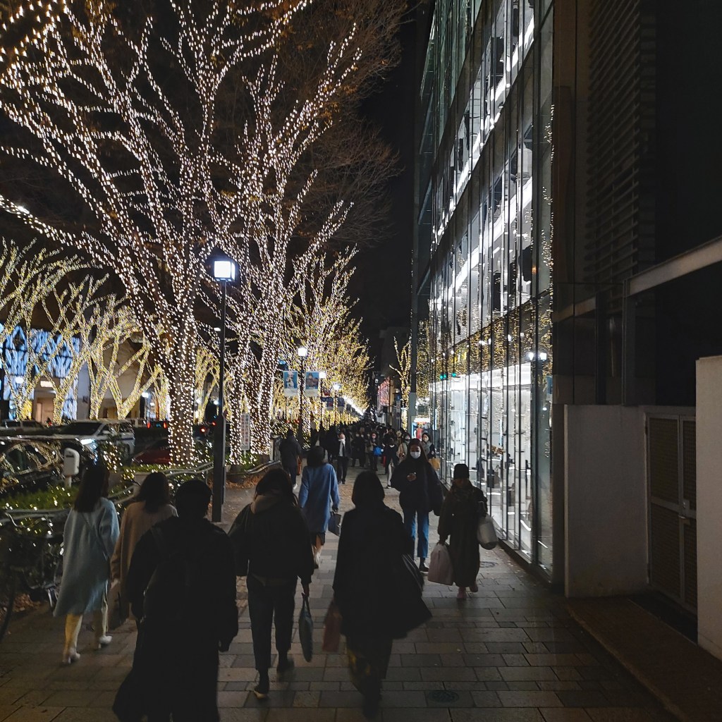 나는 그 빛을 보고 오모테산도 일루미네이션도 보러 갔다. 시부야와 오모테산도는 긴자선으로 한 정거장인 만큼 가깝다. 오모테산도역에서 내리니, 여기도 정말 연말 분위기를 느낄 수 있었다. 일루미네이션이란 나무에 LED조명들로 환하게 빛을 수놓는 것이다. 그 빛은 명품 플래그쉽 매장들의 화려한 외관, 내부 인테리어에 반사되고 혼합되어 그 거리 자체가 실내에 온 듯 하였다.