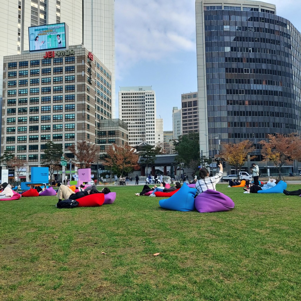 디지털 활용에 걸맞게 디지털 도서 형태로 읽을 거리들도 배치해 놓았다. 이는 실제로 서울광장에 가면 보이는 ‘열린 도서관’을 그대로 재현해 놓았다. 내가 가을 때 서울광장에 있는 방석에 누워서 낮잠을 잤던 때가 기억난다.