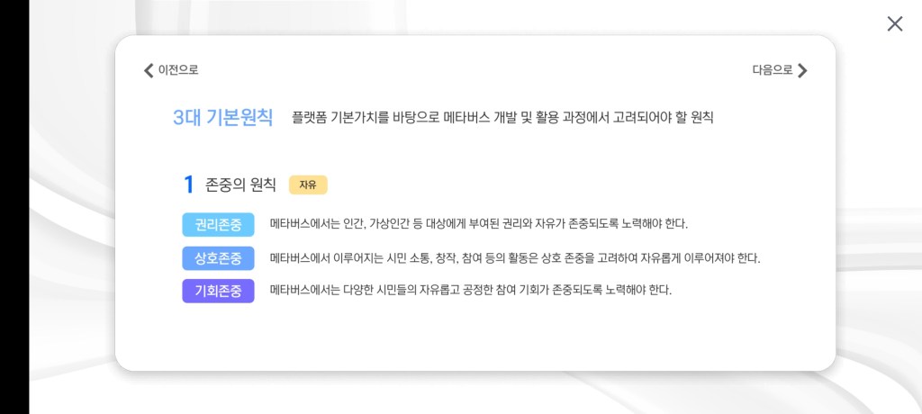 확실히 공공 앱이다 보니, 에티켓을 준수해야 한다. 이 윤리원칙 및 조항들을 확인해보니, 과연 접속자가 많아진다면 생길 다양한 상황도 고려해 보아야 할 듯 싶다.