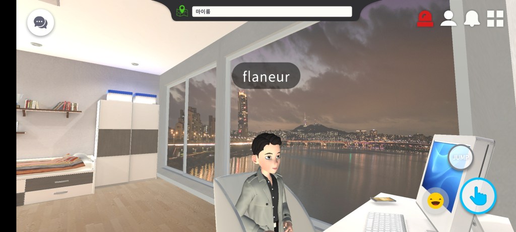 우선 들어가면 개인 캐릭터를 생성 할 수 있고, 메타버스 내 화폐로 구매해서 꾸밀 수 있다.