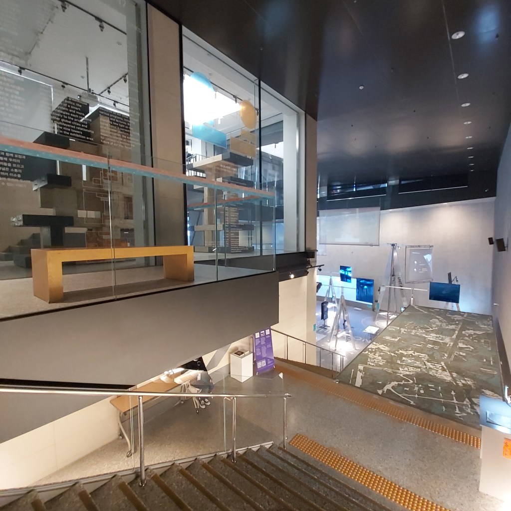 지하 1, 2, 3층의 각 전시 공간은 위 사진의 계단과 인포메이션 데스크 공간에서 나뉘어진다. 투명한 공간 때문에 순환형 전시 공간인 줄 알았으나, 실제로는 독립성을 가진 채 3 가지 성격의 전시가 가능하다. 지하 3층 비움홀은 제일 넓은 공간으로 그곳으로 가서 천장을 보면 그 전시 공간의 소품들과 전시용품들에 집중하기 편한 개방감을 준다. 비움홀 옆에 갤러리 3이라고 또 있어서, 넓지만 복잡한 그 밀도 높은 분위기를 느낄 수 있다.