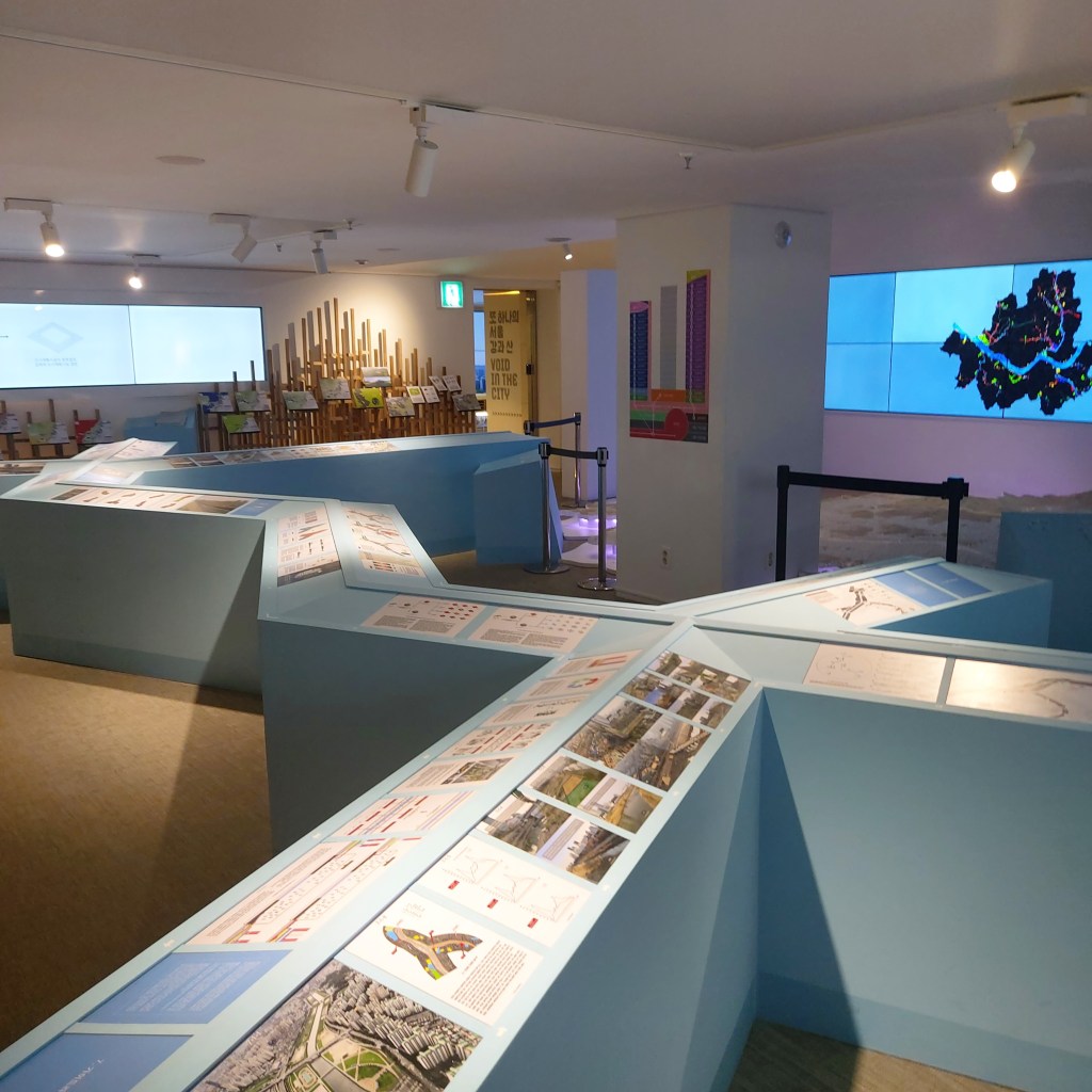 서울 라이브러리 옆 갤러리에도 전시가 열린다. 이번 주제는 ‘산’과 ‘강’이라는 서울이라는 대도시의 특징적인 자연환경을 중심으로 발전 가능성을 탐구하고 그 생산 가능성의 큰 틀을 제시하고 있다. 특히 서울 외곽의 둘레길과 개발제한구역에 대한 완화된 규제를 통해 산림자원과 서울 생활권에 속한 시민들의 산과 공원에 대한 접근성을 높이는 실천적인 방안이 제시되어 있어 많은 참고가 되었고, 강도 마찬가지로 한강을 포함한 5개의 천을 중심으로 수변과 도심의 접근성을 높이는 방안에 대한 분석도 깔끔하고 좋았다.