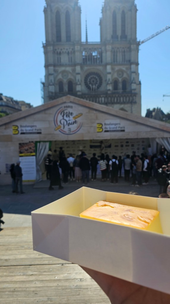 노트르담 성당 앞에 도착하니, 빵냄새가 진동해서 무슨 행사를 하는지 확인해봤다. 빵 대회를 열고 있었다. 또한 만든 빵을 판매하고 있어서, 난 바닐라 플랑이라는 프랑스 전통 디저트를 구매해 먹었다.