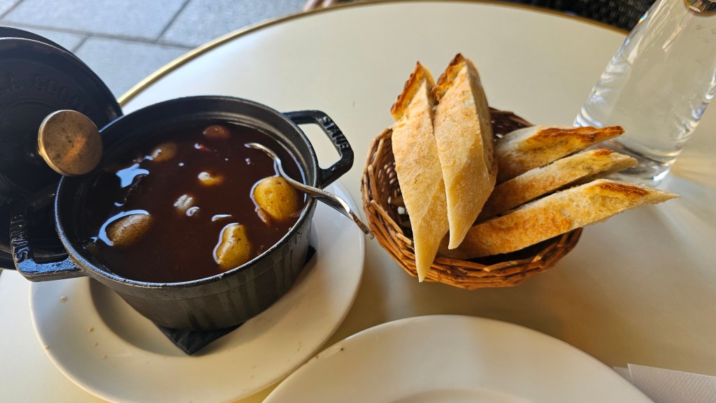 맛은… 한국의 갈비찜같았고, 보다 느끼하거나 달지 않고 짠? 와인향이 은은하게 나오는, 갈비찜이었다. 한국의 갈비찜하고 비교를 안 할래야 안 할 수 없었다. 맛은 있었다. 특히 바게트와 소스와의 궁합이 정말 대단했다. 싹싹 긁어 먹었다.