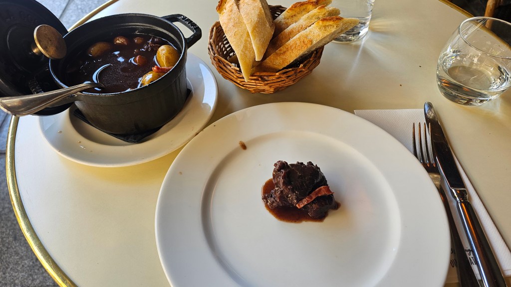 지나가는 길에 파리 시청 뒤편의 정원도 즐겼고, 그렇게 야외 테이블에 앉아 분위기를 만끽했다. 비프 부르기뇽은 무려 24유로. 39000원이나 했다. 지금 생각해봐도 파리의 외식 물가는 부담되는 건 사실이었다.