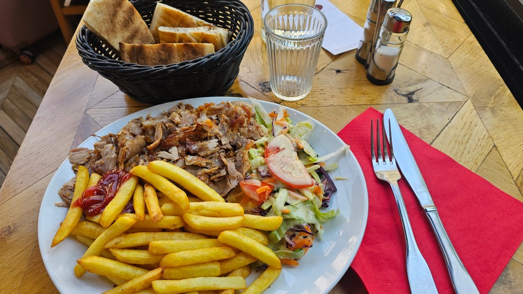 낮 12시 기차를 예매한 나는 아침을 케밥으로 때워보기로 결정하고 파리 역 인근의 케밥집에서 오리지널이기도 한 되네르 케밥을 먹어봤다. 역시 파리의 물가에 있어서 케밥은 가성비 픽이었다. 맛도 괜찮고, 좋았다.