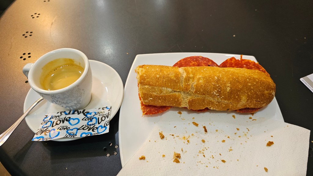 오늘의 아침은 꼬르따도와 보카딜로. 쉽게 이야기하면 스페인식 아침이다. 커피와 샌드위치인데,