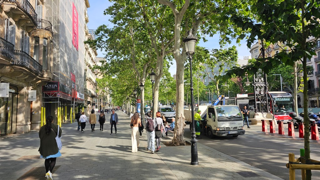 그라시아 거리는 카탈루냐, 람블라스 거리와 다르게 차도가 중심이지만 그만큼 인도도 넓어서 파리의 샹젤리제 거리같은 분위기가 나왔다.