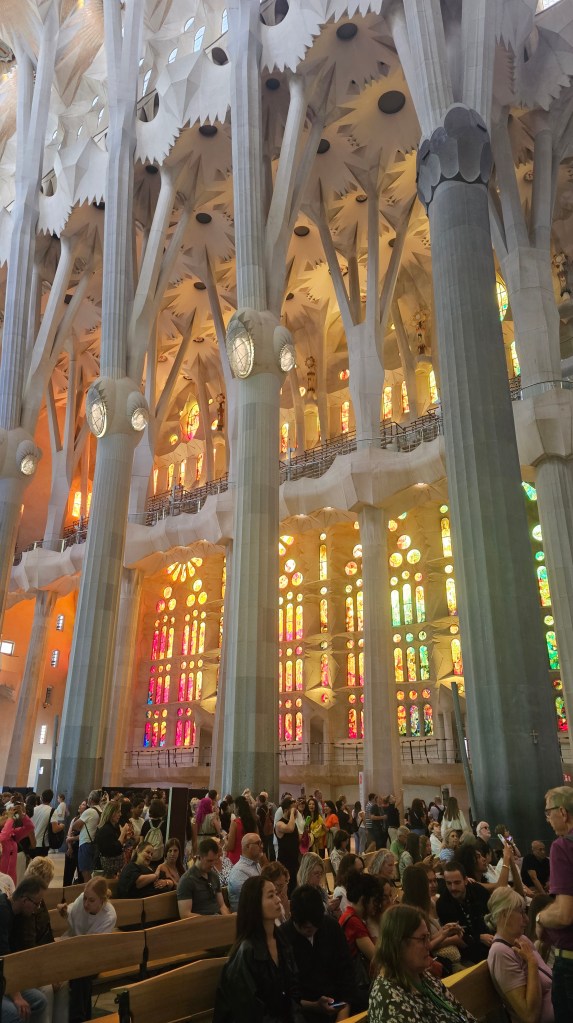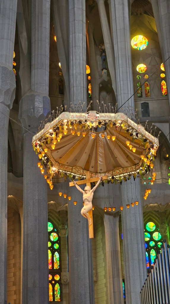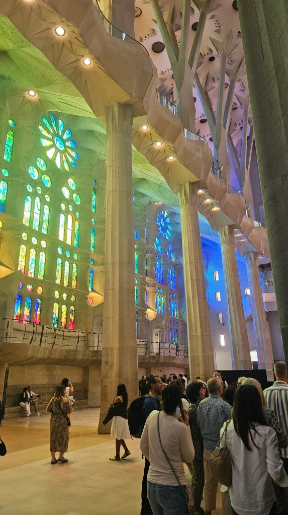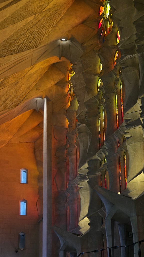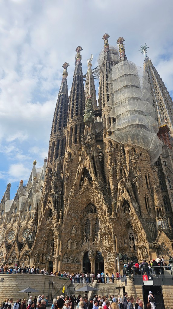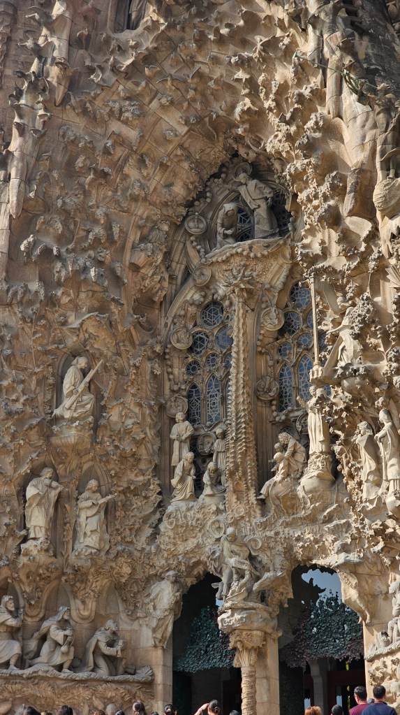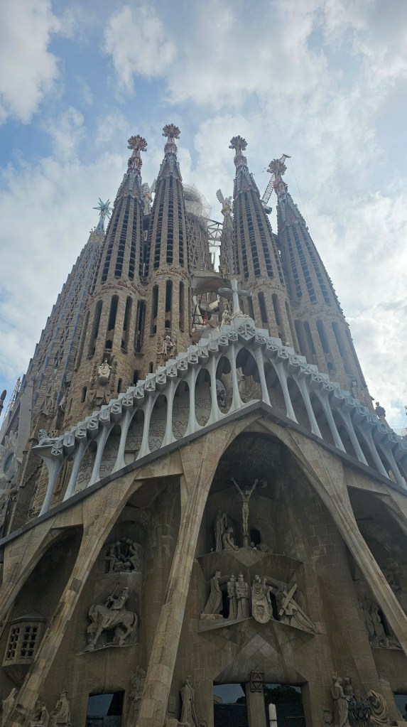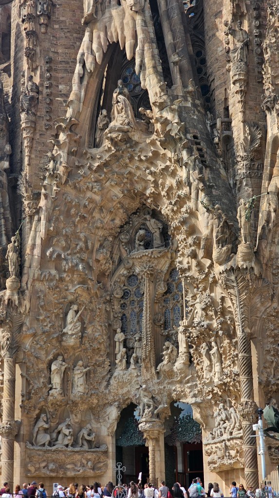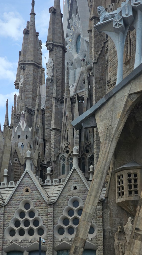 사그라다 파밀리아 성당에 도착했다. 이 성당의 특징은 가우디 사후에도 지금까지도 짓고 있는 성당이고, 그렇기에 건축가도 중간에 달라져 성당의 파사드가 각기 다른 스타일을 보인다고 한다. 위 사진의 파사드는 수난의 파사드라고, 스페인 조각가인 수비 라치가 완성했다.