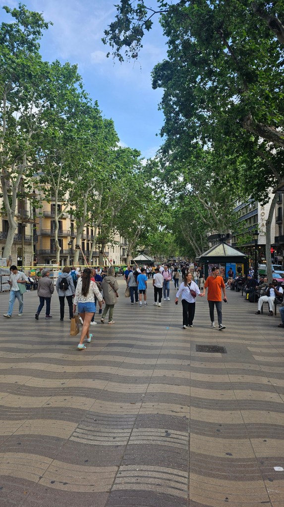 그리고 그 유명하다던 람블라스 거리도 걸어봤지만, 좌측 자전거 도로 전체를 보수중이고 사람도 너무 많아서 사실 그렇게 아름다운지 잘 못 느꼈다. 전 세계에서 제일 아름다운 거리로 손꼽히는 거리라고 하는데, 그래도 그 분위기는 느꼈다.